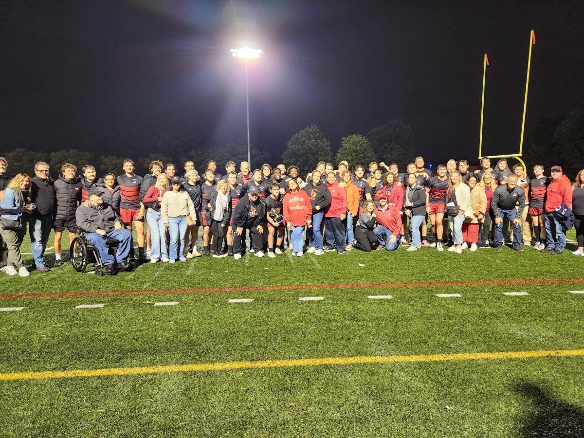 On Saturday night of Family Weekend, Catholic and Loyola squared off for first place in the Mid-Atlantic conference, with the top spot on the line in a clash of unbeaten, nationally ranked teams. Catholic jumped out to an early lead when wing CJ Edozie went around the corner at mid-field for a long-range try. Loyola battled back and closed the score with a try, then took the lead with a second score just minutes later (Catholic 7-10 Loyola). Catholic responded before the half with a second try from prop Jordan Taylor (Catholic 12-10 Loyola). Catholic started the second half with a surge and netted their third try in the hands of flanker Zack Longfellow (Catholic 19-10 Loyola). Rain swept in during the second frame and attacking opportunities became harder to create. However, Loyola executed a very nice kick and chase into the try zone to narrow the gap to 19-15.